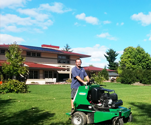 Adjustable depth gauge, large or small lawns, gentle on turf, ride or walk, excellent results!